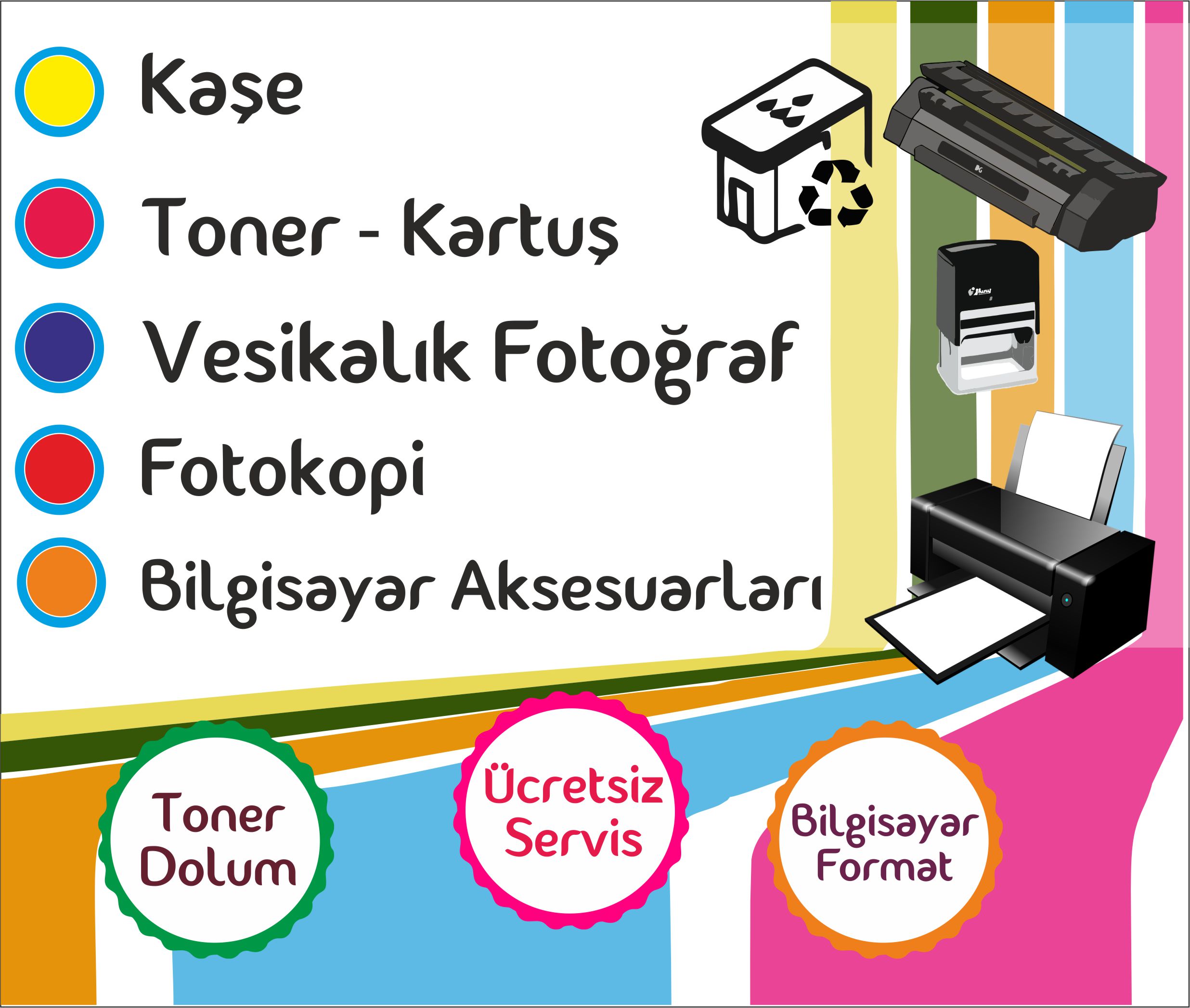 Kalemden silgiye, masaüstü gereçlerinden ofis ihtiyaçları gibi ihtiyacınız olan tüm kırtasiye ürünleri ofisimizden ya da online kırtasiye alışverişine,toner,kaşe,kartuş,vesikalık fotoğraf ve fotokopi alanında hizmet vermekteyiz..